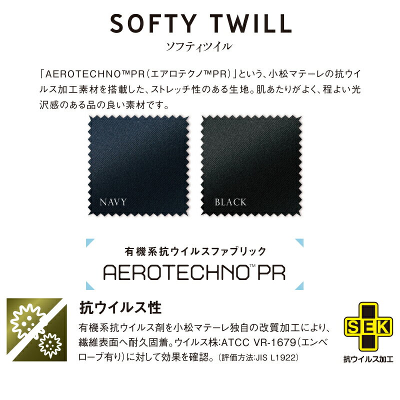 抗ウイルス加工の「エアロテク™PR」が搭載され、肌あたりがよく、程よい光沢感が上品なボトムスで、新しい時代のスタンダードです。