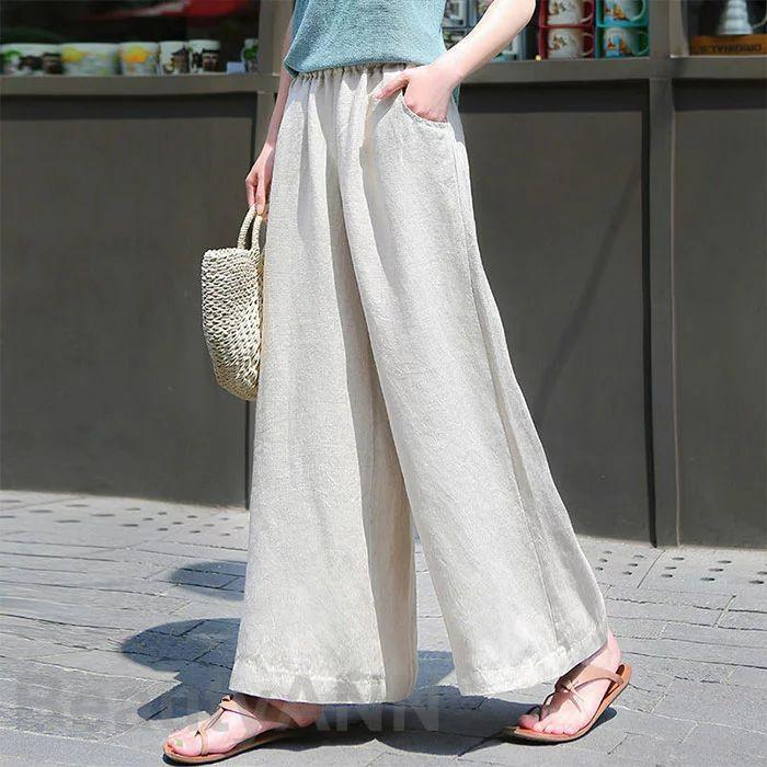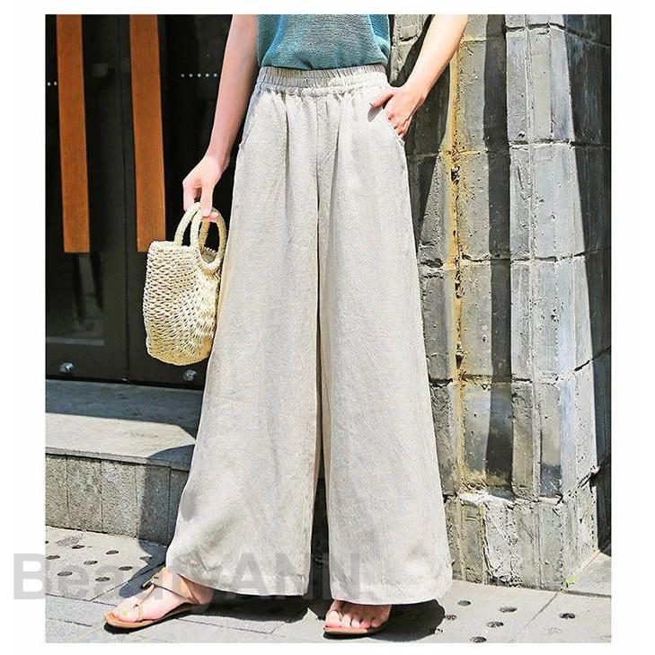 ワイドパンツ レディース ガウチョパンツ スカーチョ ロングパンツ 大きいサイズ 綿麻風 無地 薄手 Aライン フレア ワイド ウエストゴム カンツ ハイウェスト オ
