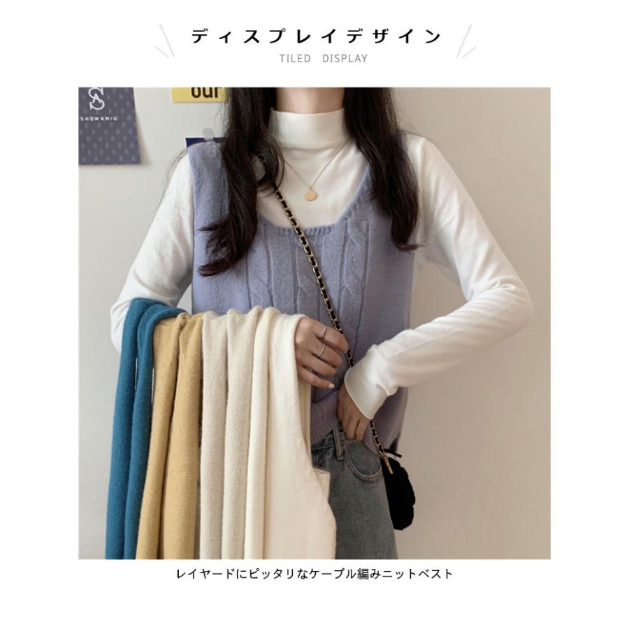 【素 材】:レーヨン レイヤードにピッタリなケーブル編みニットベストほんのり起毛感のある生地で、季節感が溢れる着回し力バツグン、ベーシックなデザインどんなトップとも合わせやすい優秀なアイテム ●おすすめポイント《1》豊富な5カラー展開となり、色違いで揃えてコーデを楽しめましょう《2》太めのケーブル編み模様が女性らしく可愛い気分《3》ルーズ過ぎず、程よくゆとりのあるシルエット