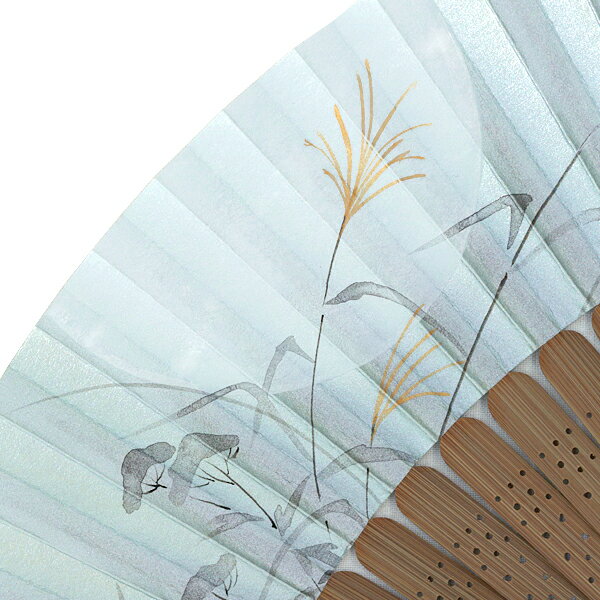 メロウな水色の扇面に薄墨の芒が揺れます。