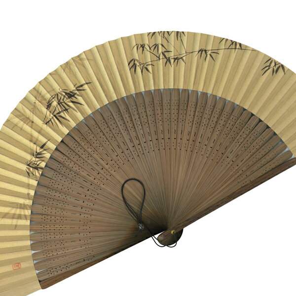 落ち着いたゴールド地紙に墨色で描かれた竹。