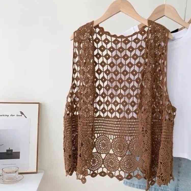 全8色!着丈52cm/58cmが選べる!レース素材で透け感を楽しめる前開きベスト。