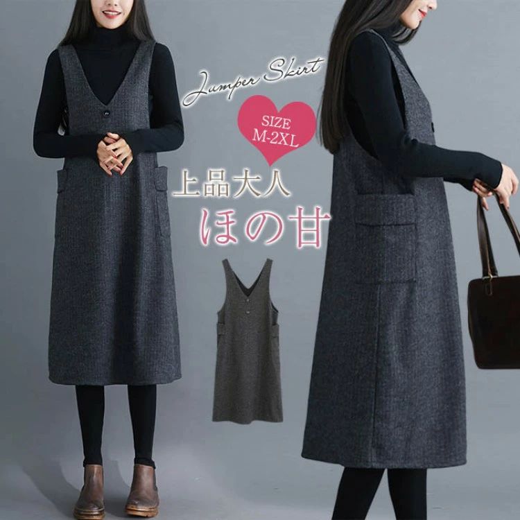 素材ポリエステル81%ー90% コットン10%ー19%裏地あり生産国中国伸縮性少しジャンパースカート 秋 冬 ワンピース ワンピース 続々登場 M L XL 2XL