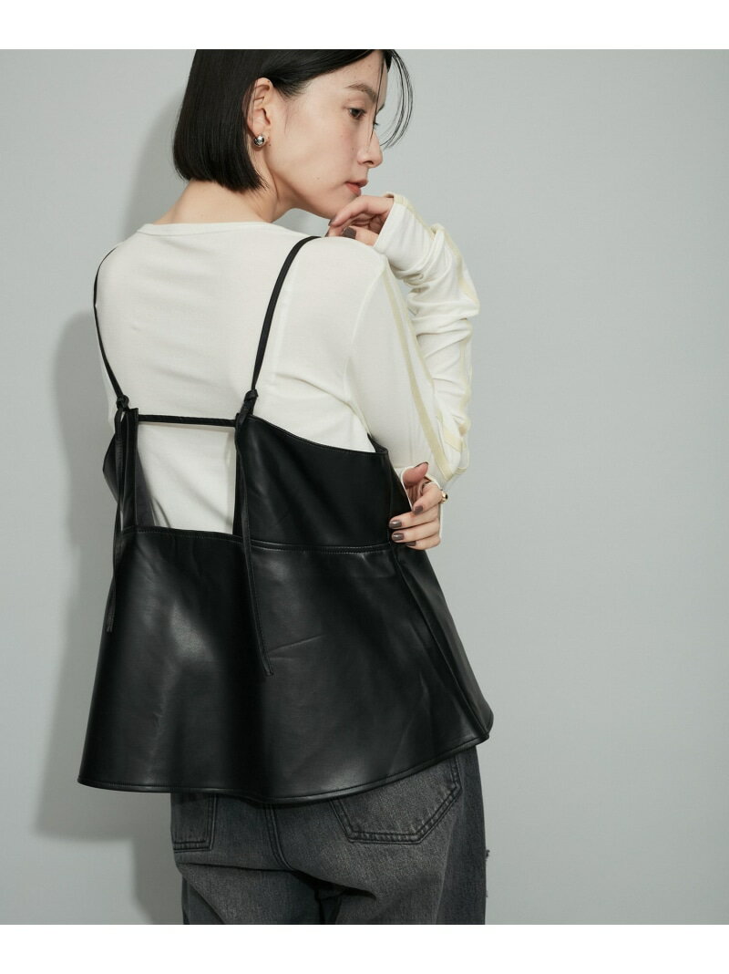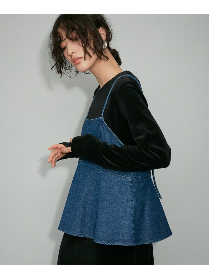 【WEB限定】デニム/シンセティックレザー ペプラムキャミソール《肩紐調節可》デニムとシンセティックレザーの素材がシーズンムード高まるアイテム。