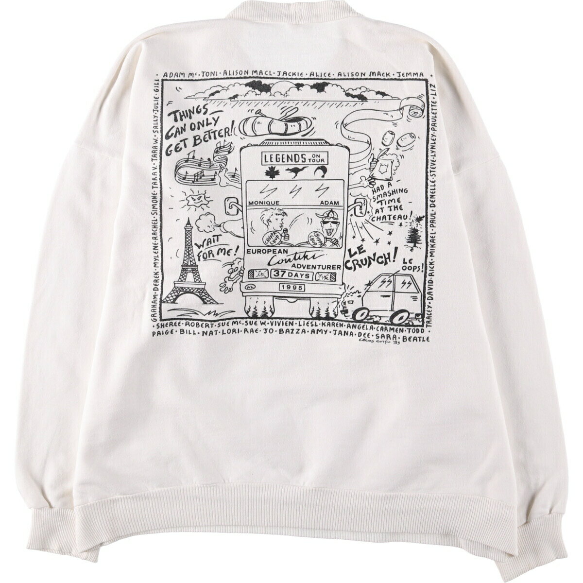 サイズガイドはこちら ブランドUNKNOWN 特徴クルーネック(丸首) / 長袖 / バックプリント / ヴィンテージモデル/形状プリントスウェットシャツ トレーナー素材不明色ホワイト系 白色柄プリント生産国不明年代90年代カテゴリトレーナー商品番号eaa531859取扱店 品質表示タグ擦れの為、生産国と素材が不明でございます。