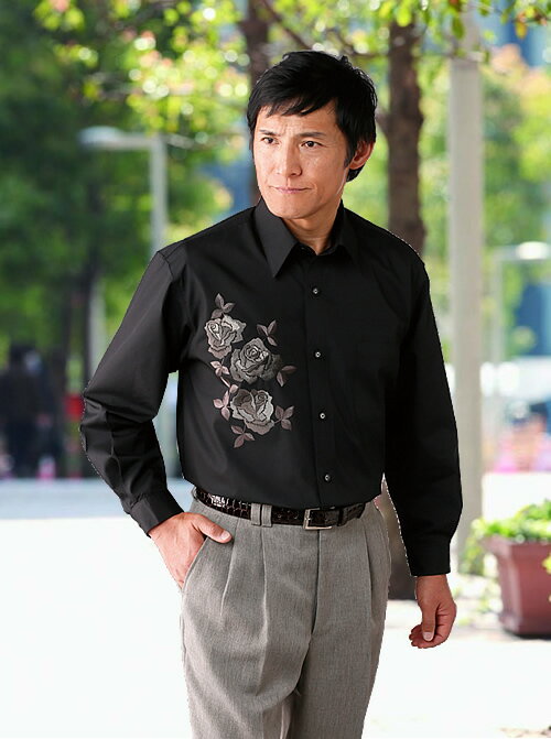 ■日本製バラ刺繍柄シャツ 個性が際立ち、お洒落な方々にお薦め シーンを選ばずエレガントに着こなせます 男の色気が際立つ!男が上がる逸品のエレガントシャツです。