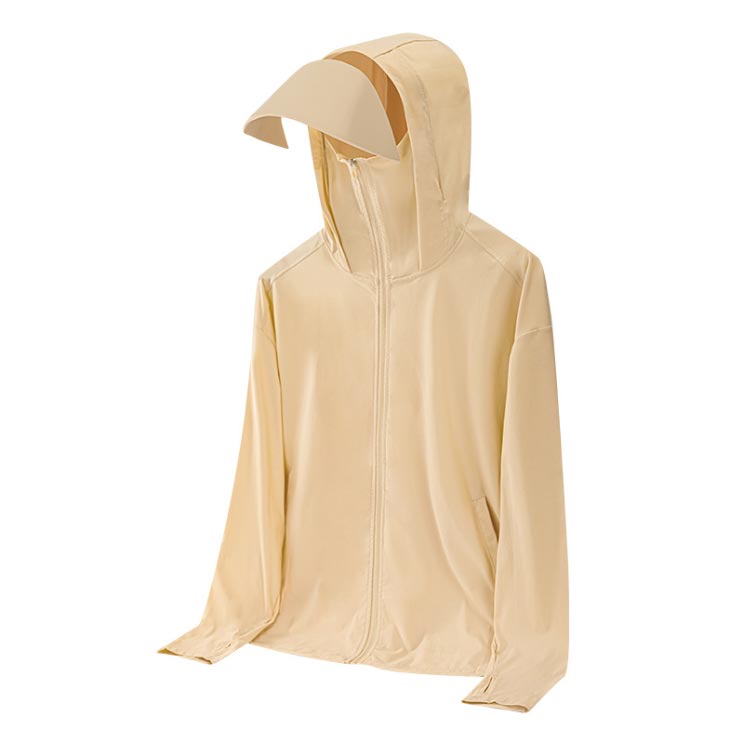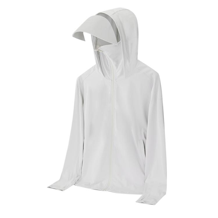 つば幅広で360度紫外線をカット!99%の遮蔽率を誇り、手の甲までしっかりとカバーするUVパーカー 吸水速乾 接触冷感 UPF100+紫外線カット+通気性の良い冷感素材の高機能性があるUV パーカー。
