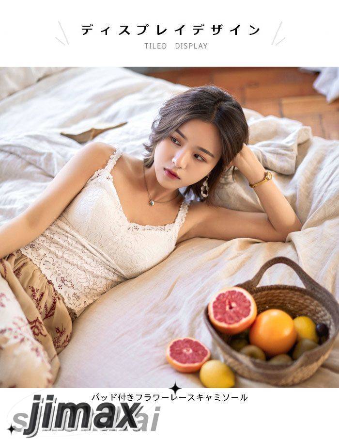 パッド付きフラワーレースキャミソール柔らかな裏地が付いて、さわり心地抜群デコルテをすっきり魅せてくれるVネックストラップの調整?パッドの取り外しができる ●おすすめポイント《1》精巧なフラワーレース模様が魅力的《2》大人女性の優しさをアピールしてくれる一枚《3》トップとしても、重ね着のインナーとしてもばっちり