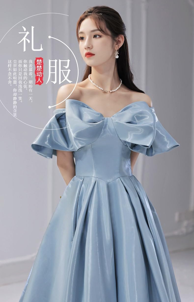 オフショルダーデザインと女性らしさあふれるシルエットのドレス。