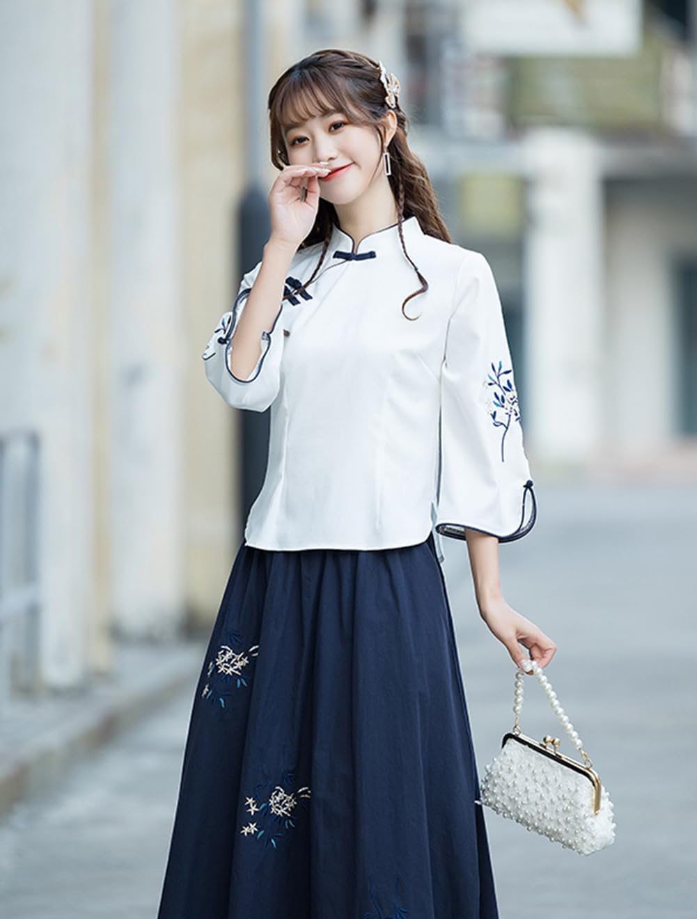 undefined説明 [YAZHUE] チャイナー服 レディース チャイナーボタン 刺繍 ブラウス チャイナー風 トップス ロングスカート 上下 セットアップ 民族風 漢服 中華服 演出 撮影 コスプレ 詳しいサイズ: