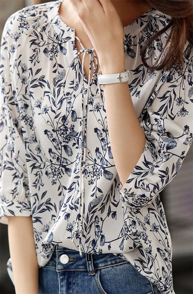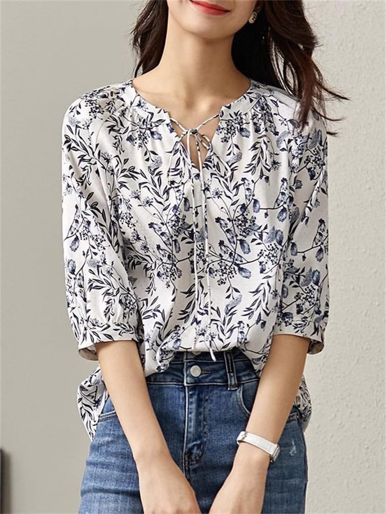 CAIXINGYI レディース ブラウス 花柄シャツ チャイナシャツ トップス 春 夏 通勤 通学 デート お出かけ 中華風