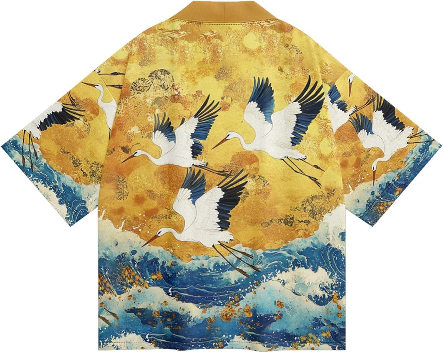 オープンフロント、レギュラーフィット、ボタンなしデザイン、和柄でプリント。
