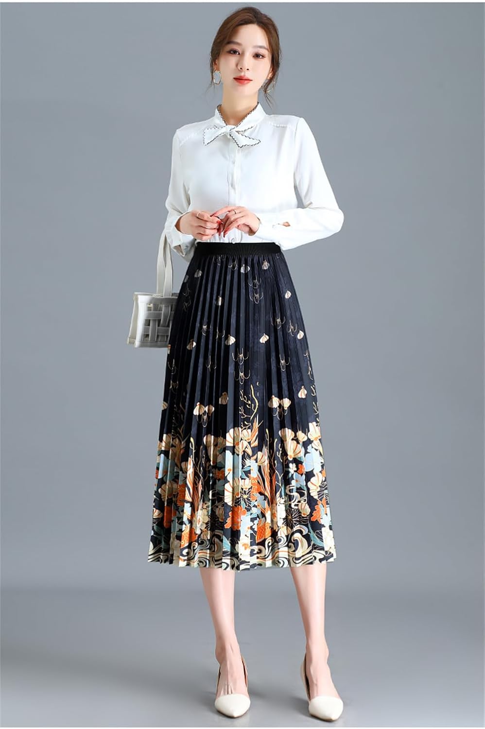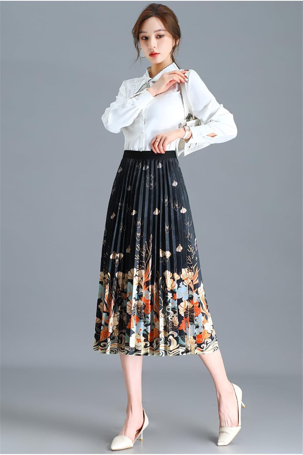 ふわっと広がる裾が脚を細く見せてくれるのもウレシイ☆体型カバーも叶うロングスカート!大人っぽい印象に仕上がる! YUNHEN●動く度にふんわりと揺れるプリーツでデザインが縦のラインを強調して、体型カバーしてくれます、脚長効果も抜群です!フレアなシルエットなので、ボディラインを気にせずに着用できます。