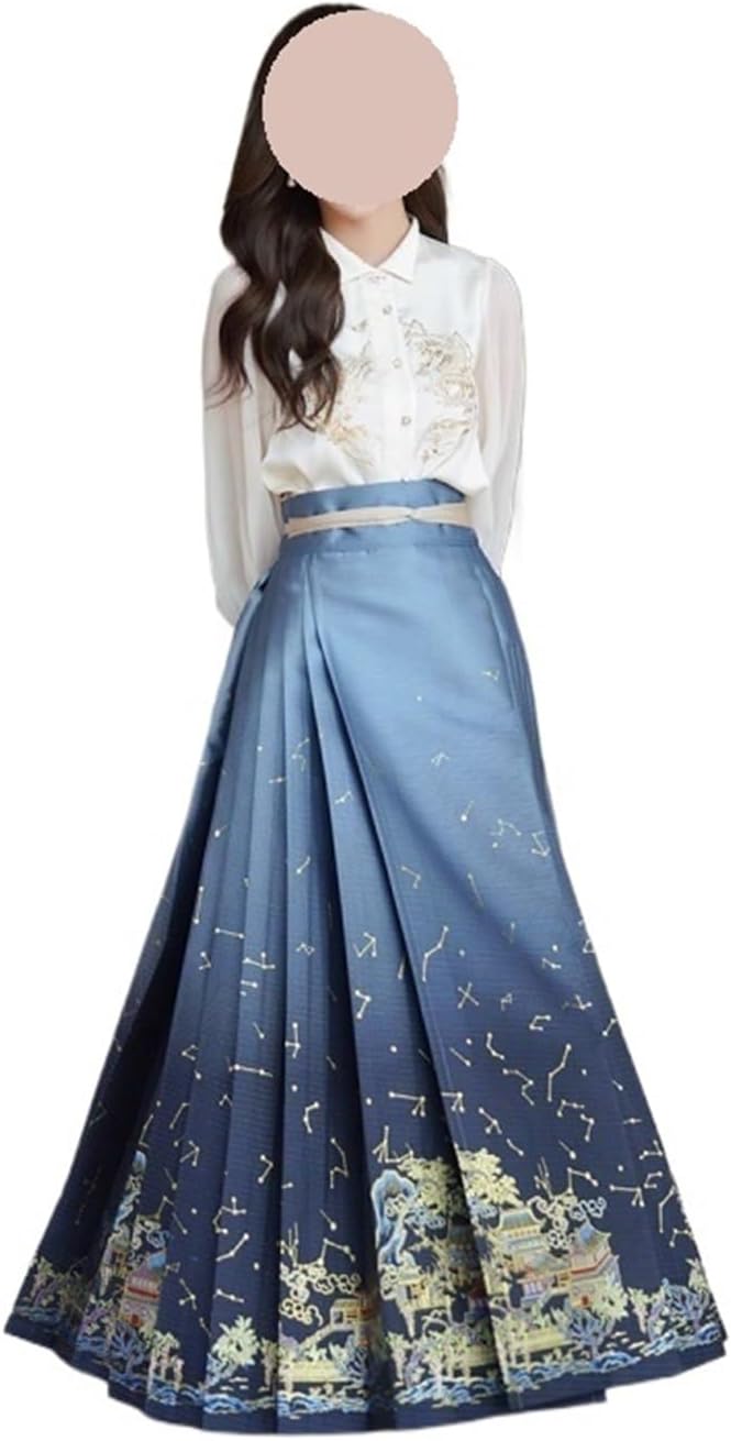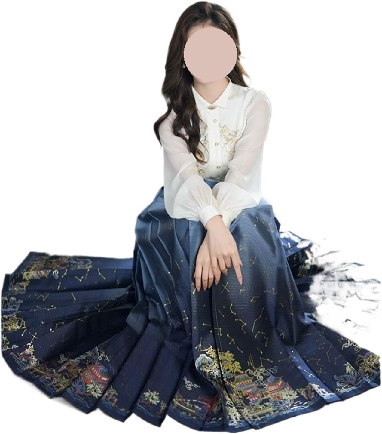説明 伝統的な日常の漢服セット馬の顔のドレス女性中国刺繍マミアンスカートファッションウェア衣類馬スカートの工程:印刷拝啓、当店へのご購入をお待ちしております。