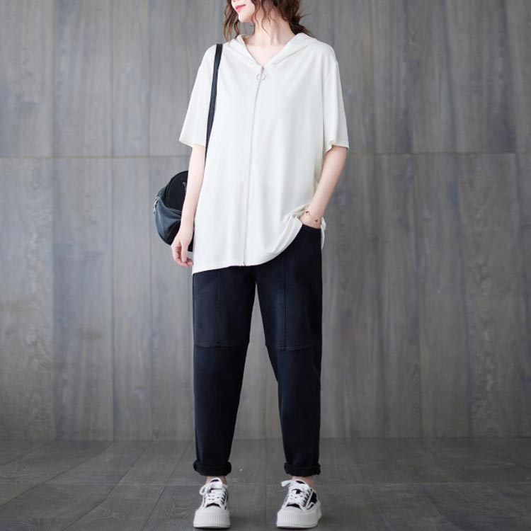 フード付き、ビッグシルエットのジップアップ半袖パーカーシルエットも美しく丈なので、汎用性が高くコーデに取り入れやすい。