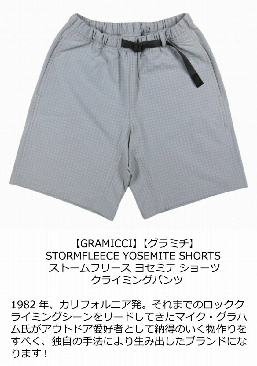 【GRAMICCI】STORMFLEECE YOSEMITE SHORTS ストームフリース ヨセミテ ショーツ GCP-21S115 素材表示 ポリエステル 92%,ポリウレタン 8% コメント 新品未使用