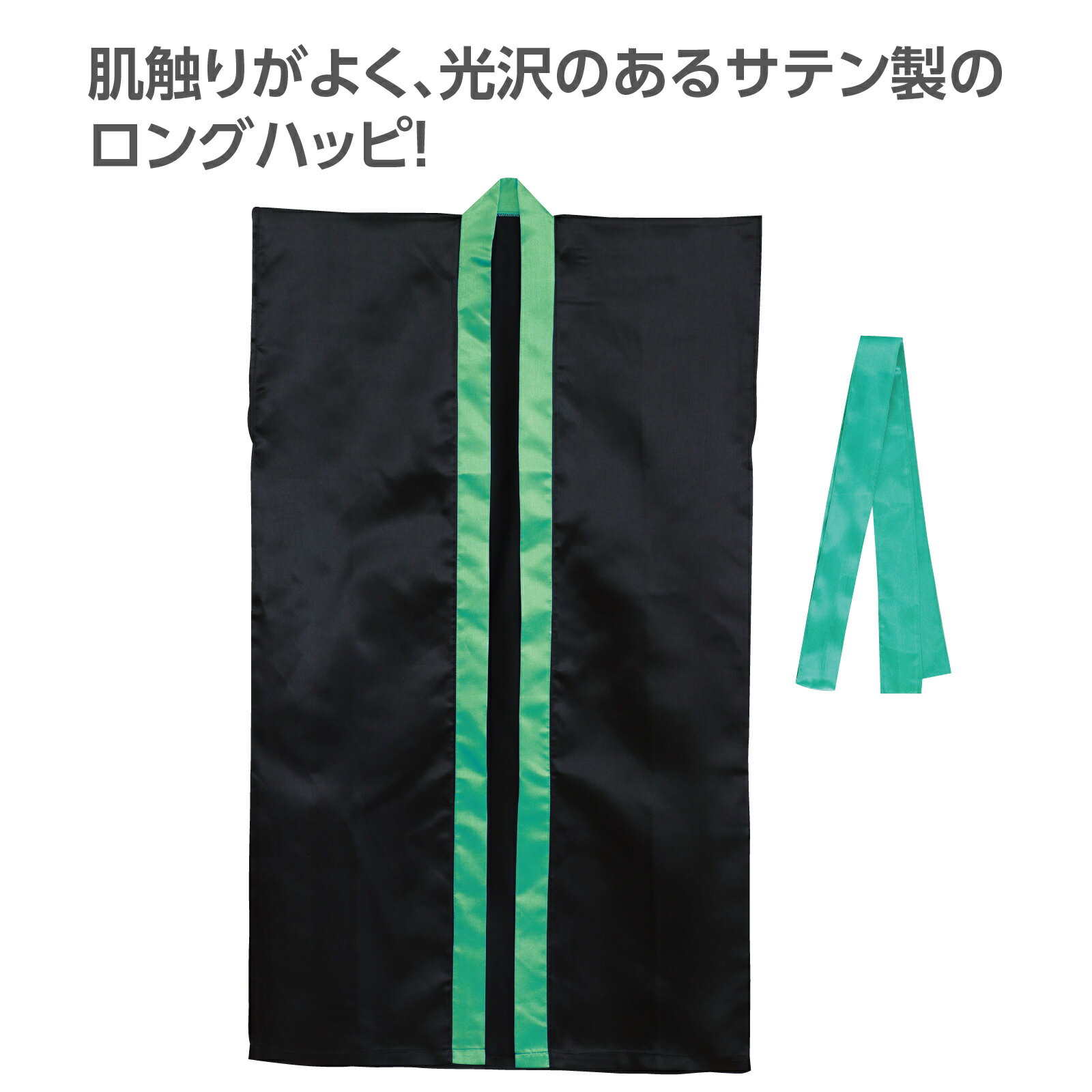 特長 ●肌ざわりの良いサテン生地を使用したロングタイプのハッピです。