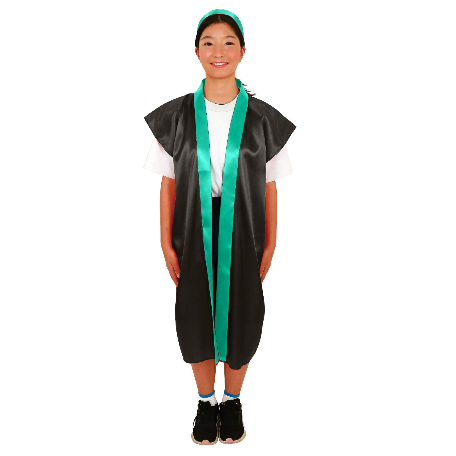仕様 ●商品サイズ: ハッピ: 615×1000mm、ハチマキ: 1550×45mm ●セット内容: ハッピ×1、ハチマキ×1 ●1個重量(g): 167 ●材質: ポリエステル ●本体色: 黒/襟緑 ●製造国: ベトナム 注意事項