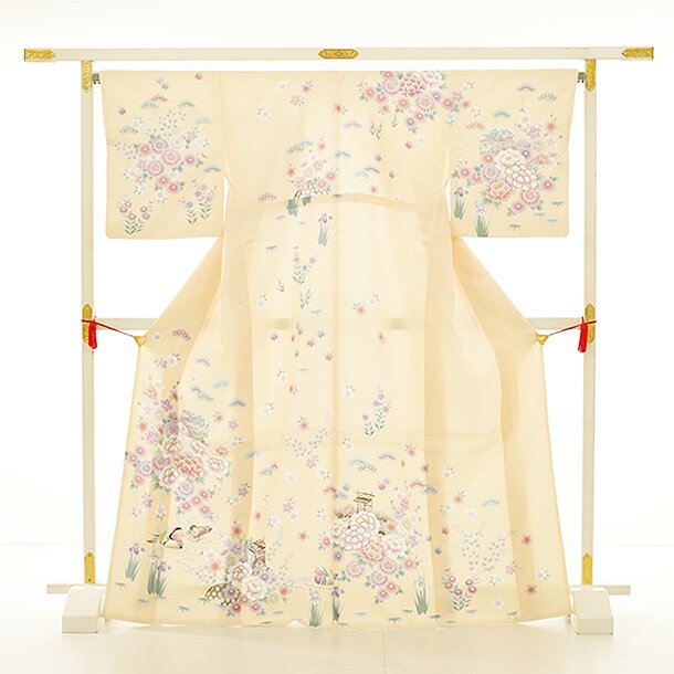 【付下げ訪問着レンタル tc894 クリーム色 牡丹に鴛鴦】