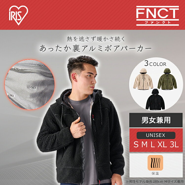 肌触りの良いボア素材と熱を逃さないアルミ加工で、着心地ずっと暖かい、寒さに強いパーカーです。