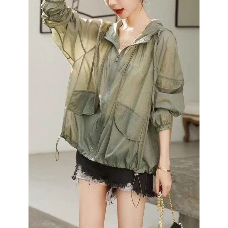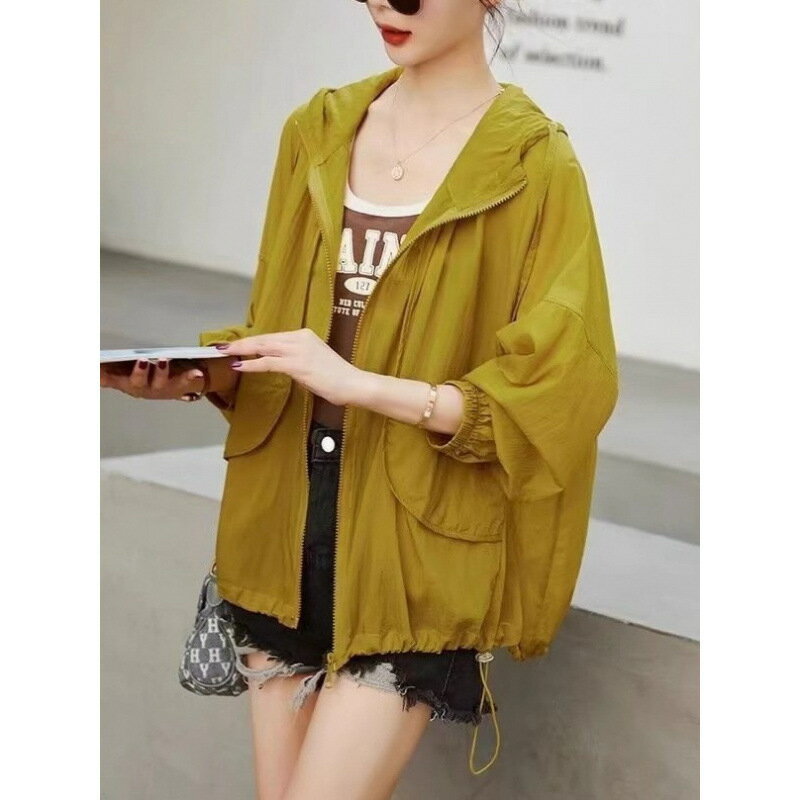 【腹周ポケット|自然アクセス】フード付きデザインが首元まで紫外線ブロック。