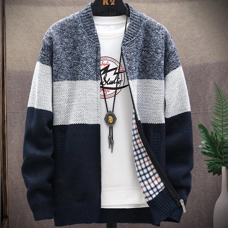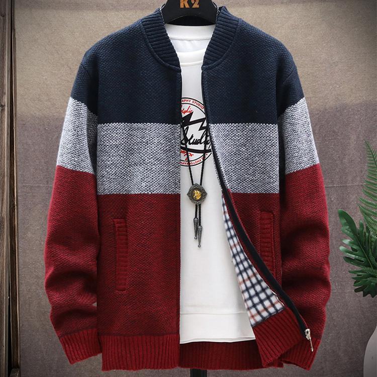 ニットカーディガン メンズ ニットジャケット セーター 防寒 ジャケット 切り替え 厚手 裏起毛 アウター お兄系 春物 暖かい色 ネイビー ワイン グレーサイズ L XL 2XL 3XL 4XL素材 綿混紡[原産国] 中国