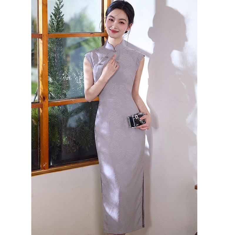 ?ロング着丈で脚長効果抜群のオシャレなスタンドカラーチャイナドレス ?背中にファスナーを採用し、女性のみならず男性の方でも簡単に着脱できます。