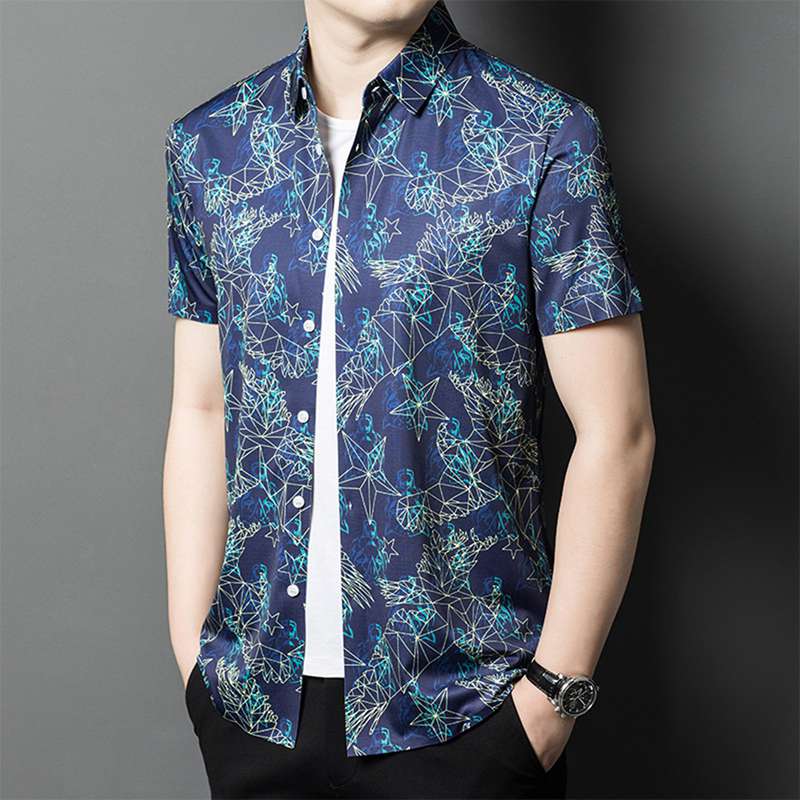 【薄手】おしゃれな柄のカジュアルな開襟メンズシャツです。