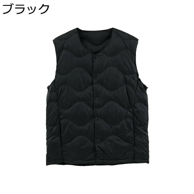 【ダウンベスト】メンズダウンベスト、詰め物はダウン、表地素材はナイロンを採用されて、耐水性と断熱効果は優れました。