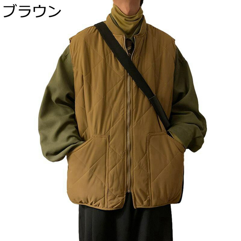 中綿:ファッション性、防寒性を兼ね備えた中綿入りベスト。