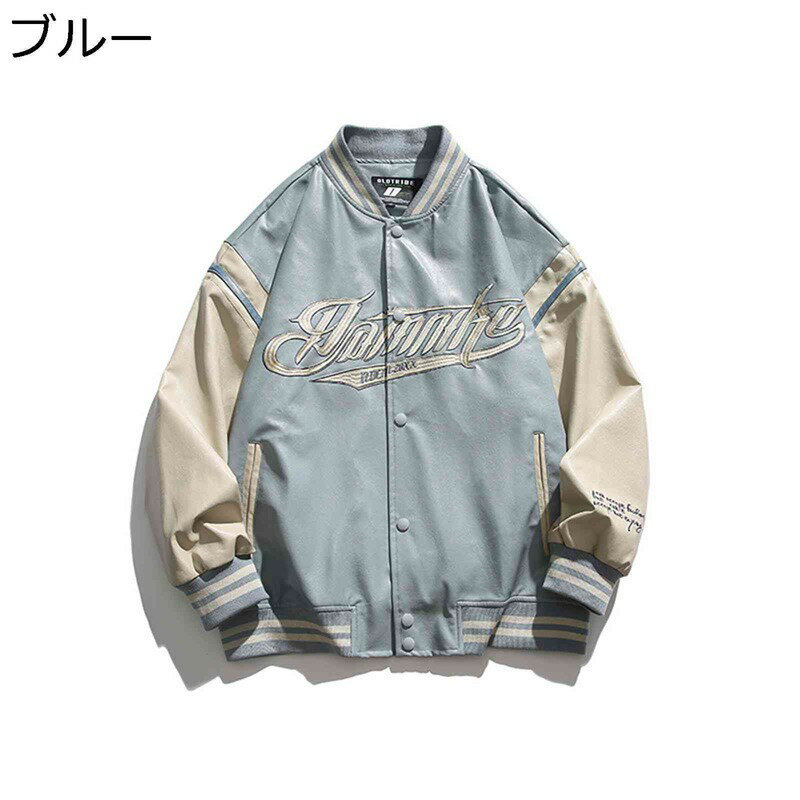 【PUレザー】春秋に向けたPUレザーパッチワーク野球ジャケット!スタジャンは滑らかなPU革と刺繍のデザインを使用し、またゆったりした着用感なので、定番のアメカジジャケットです。