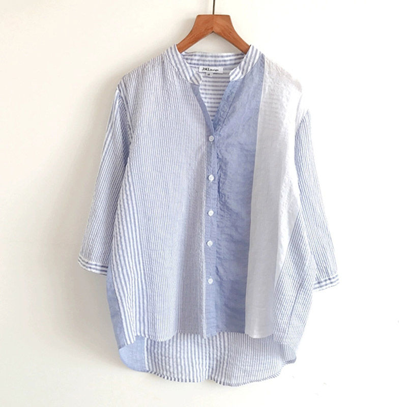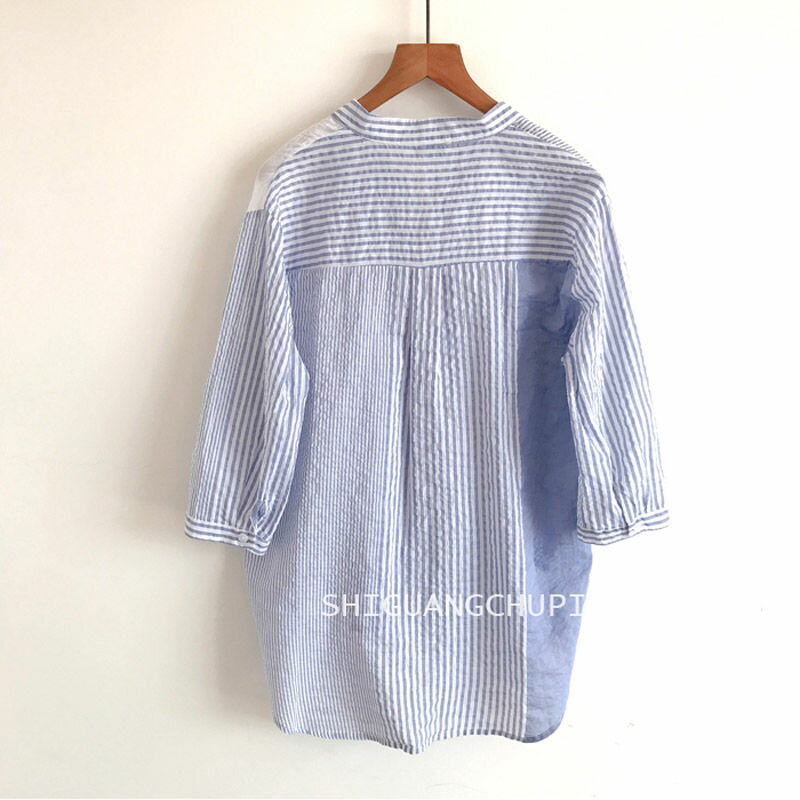 シャツ ブラウス レディース 春 夏 シャツブラウス 七分袖 綿100 トップス チュニック ブラウス 前後差 ストライプ 切り替え おしゃれ 大きいサイズ ロングシャツ 7分袖 キーネック vネック 綿シャツ 柄 きれいめ ゆったりカジュアル 大人可愛い 40代 50代 30代 通勤 部屋着 散歩 ママ 母の日 プレゼント
