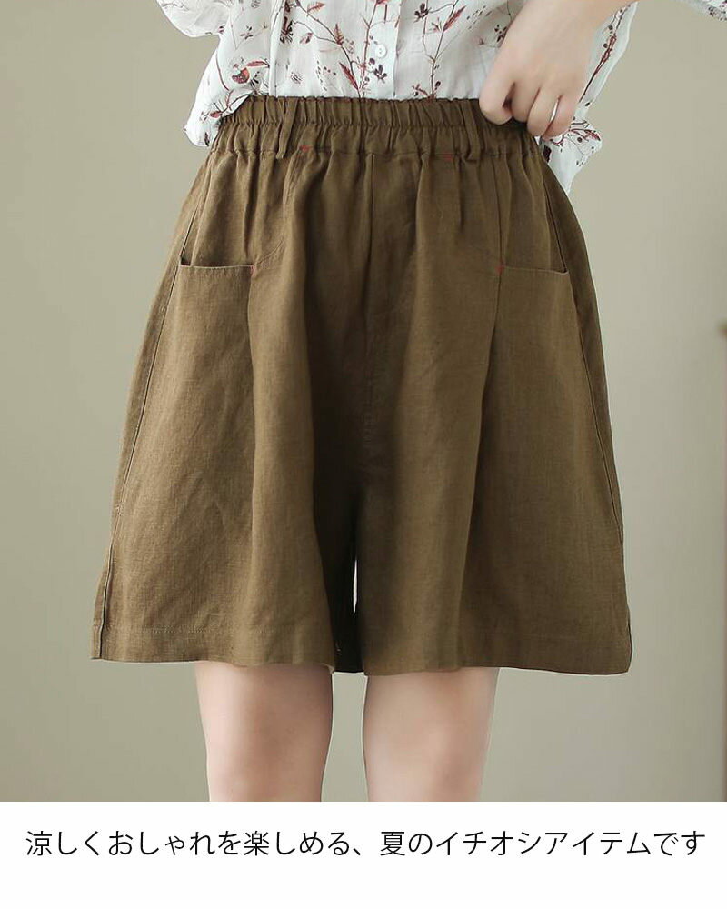 パンツ 綿 麻 ショートパンツ レディース 夏 ハーフパンツ パンツ キュロット 五分丈 ボトムス ガウチョパンツ 大きいサイズ ズボン ワイド aライン ウエストゴム ハイウエスト 無地 リネン リネンパンツ 薄手 オシャレ ゆったり 体型カバー カジュアル 部屋着 ルームウェア 散歩 夏用 吸湿 通気性 ママ ゆったり 美脚 ポケット付き 春 薄手 涼しい 商品情報:★サイズ(CM):M/L/XL/2XLパンツ丈:54/54/55/55ウエスト:66-88/70-92/74-96/78-100ヒップ:102/106/110/114裾口:68/68/69/69