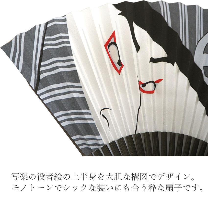 扇子は暑い夏に必須のアイテムです! しっかりとした骨組みと扇子の質感で扇ぎやすく、 暑い夏に爽やかな風を届ける和のテイストをお届けします♪ 商品内容 扇子 扇子の色柄 グレー地に写楽の役者絵がデザインされています。