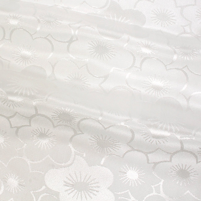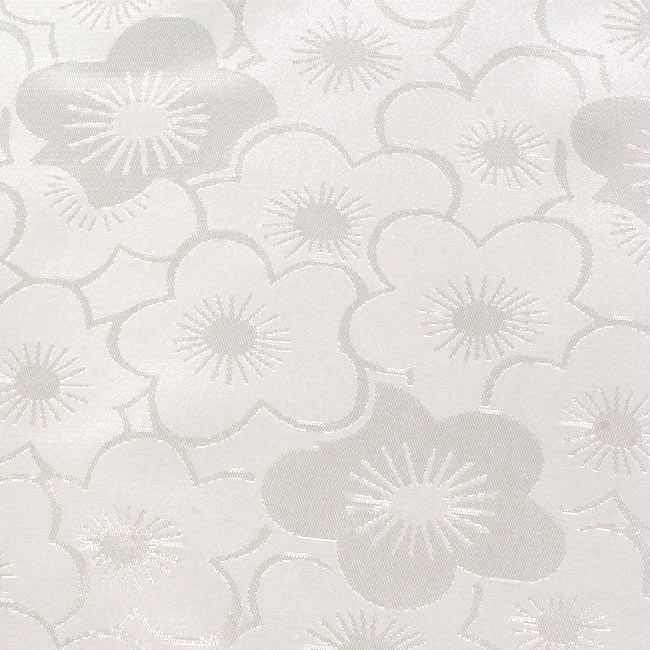 白地にかわいい梅柄の地紋入り 光沢のある生地は、セミフォーマルにもお使いいただけます。