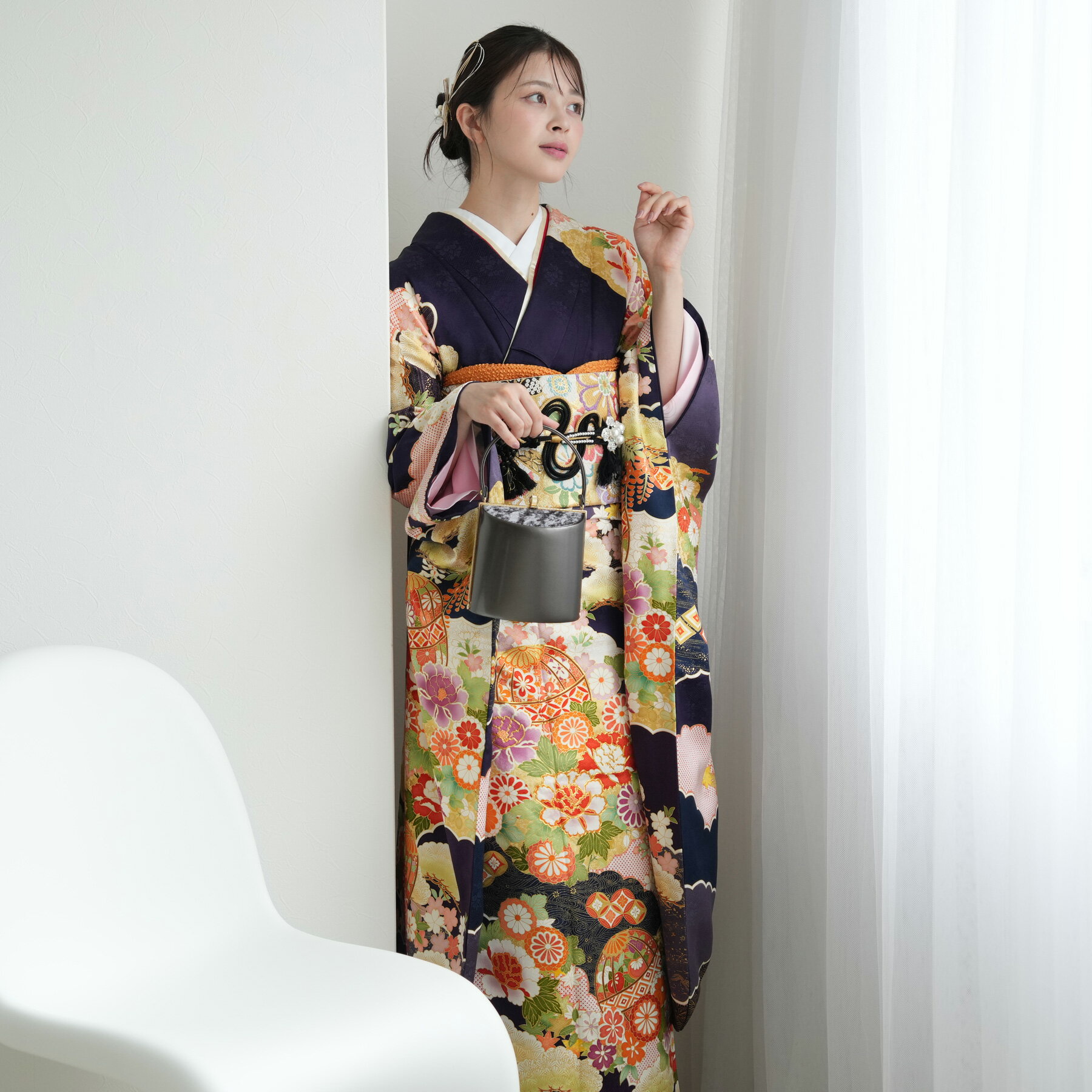 着物全体に柄がございますので、立姿、後姿を華やかに演出いたします。