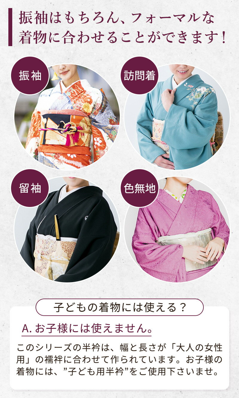 ※1(ひとえ) 仕立てになっているお着物の衿元にふさわしい半衿です。