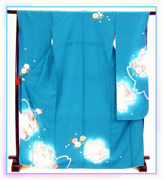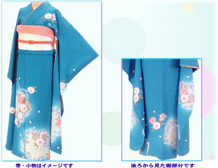 お着物の説明 パステル調のブルーがとても鮮やかで、 思わず見入ってしまう位綺麗なお振袖です。