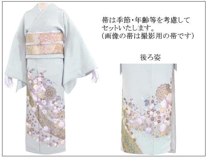 寸法身丈:163cm/裄:68cm/袖丈:49cm/前幅:25cm/後幅:30cm 対応サイズ身長155〜166cm位 ヒップサイズ99cm以下の方 素材表地:絹100% 裏地:絹100% おすすめ年代30〜50代 紋五三桐・三つ紋 レンタル期間 レンタル期間は通常3泊4日となります。