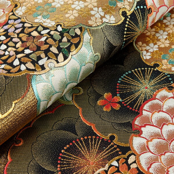 品番/品名 B1276/振袖用帯 金黒 青海波 雪輪取りの花 適応着物 振袖 素材 正絹 形状 袋帯(普通尺) きもの安心保険 『きもの安心保険』 にご加入いただきますと、通常のクリーニングでは落としきれない特別メンテナンス料金のご請求はいたしません。