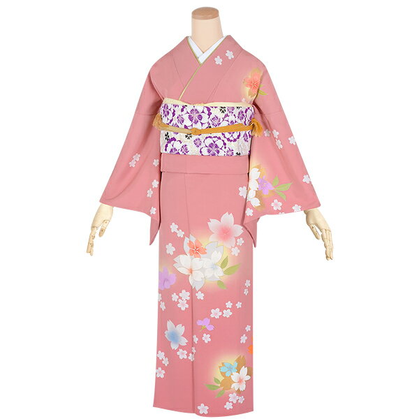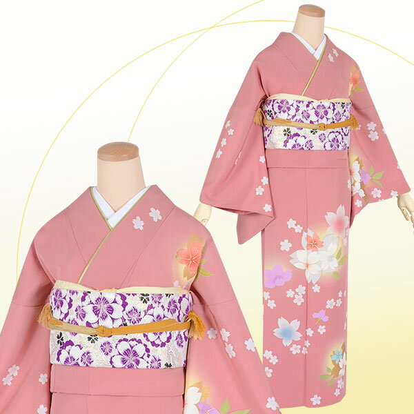 【商品名】訪問着 レンタル|ピンク 舞う桜