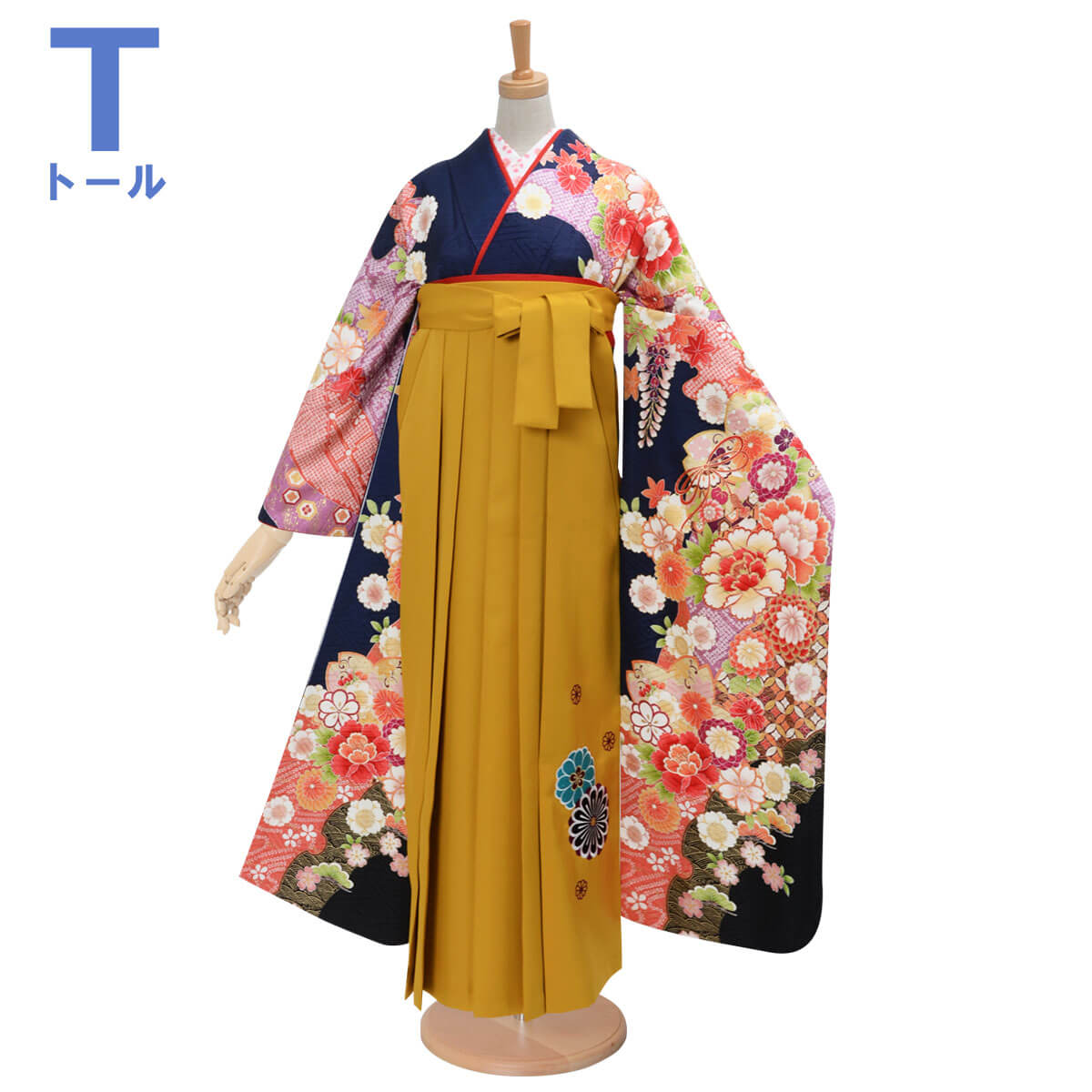 適応サイズ トールサイズ身長 約165〜169cmバスト 92cmまで »適用身長外でのご着用について 着物寸法 袖丈113cm / 裄丈 70cm »寸法の見方 素材 正絹 袴 スカートタイプの仕様です。