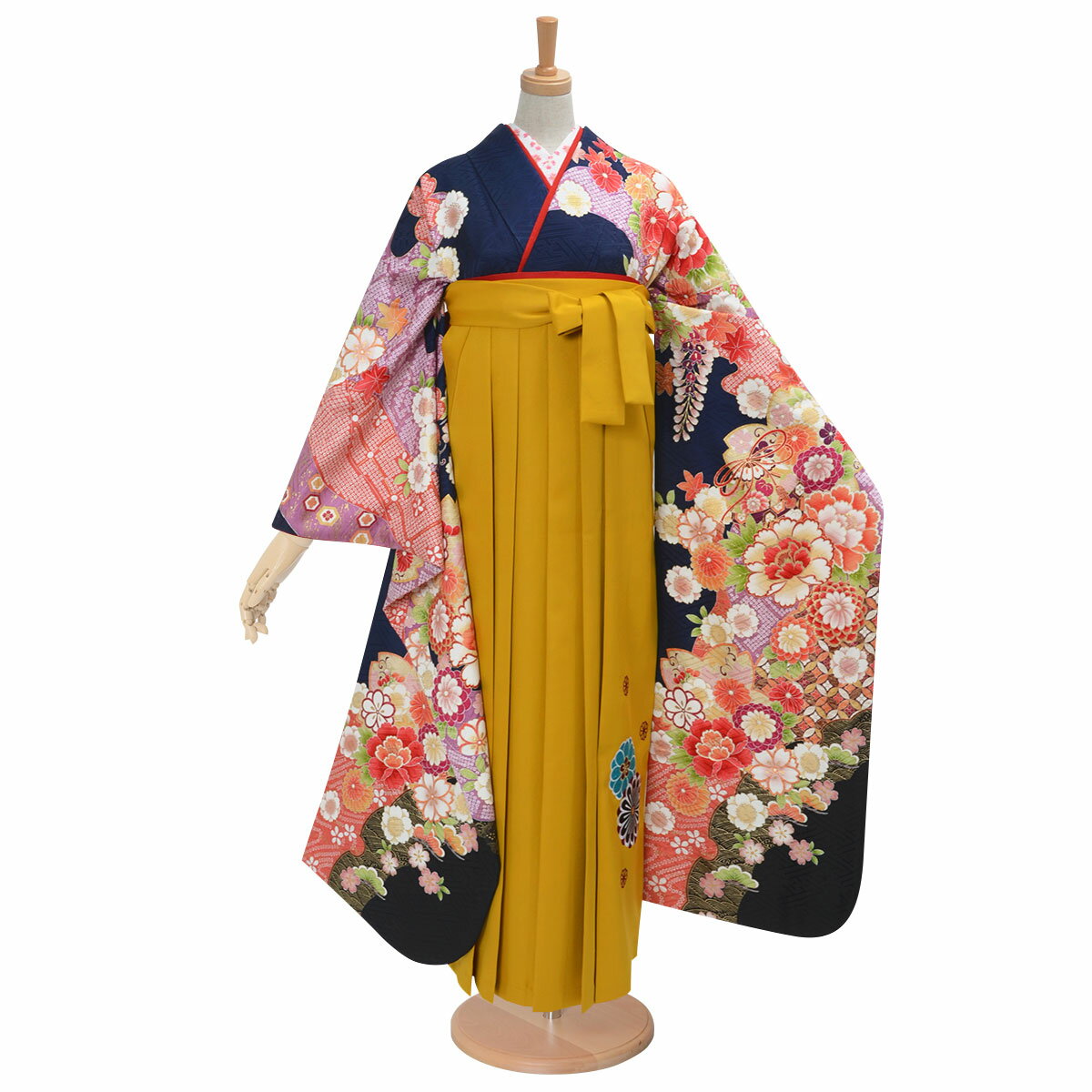 【HOT KEYWORD】卒業式 謝恩会 小学生 中学生 高校 大学 短大 専門学校 卒業式袴 レンタル着物 レンタル袴 袴 女袴 振袖 袴セット 女性 女 レディース フルセット はかま 貸衣装 rental 成人式 発表会 お稽古 コンサート 舞台 振袖袴カテゴリー 品番/商品名 RR1870/紺 道長取に雪輪貝桶☆(絹)(R1551) 紺色に染めた地に、道長取に大きな雪輪を組み合わせ、貝桶や季節の花々をあらわしたお振袖、華やぎにあふれる色使いで表現した雅な印象の一着です。