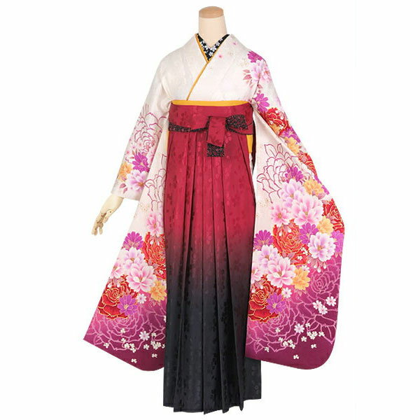 【セット内容】 1) 振袖 2) 袴 3) 半幅帯 4) 重ね衿(伊達衿) 5) 草履・バッグ 6) 肌着(きものスリップ)7) 長襦袢(着物に合った色柄で、衿は刺繍を施した半衿付き) 8) コーリンベルト 9) 帯板 10) 衿芯 11) 腰紐5本 12) 伊達締め2本 13) 足袋(サービス品)