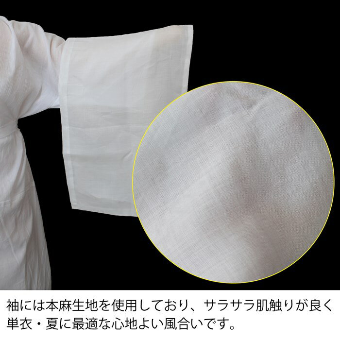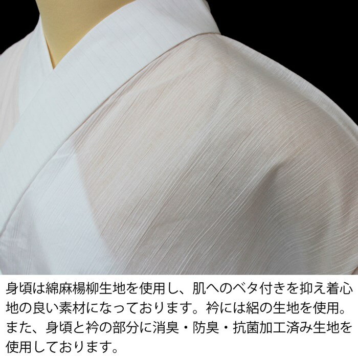 ≪商品の特長≫ (1)本体生地には防臭・抗菌加工済みの綿麻楊柳生地を使用! (2)袖生地は本麻生地を使用! (3)袖部分は脱着・サイズ調節可能(マジックテープ脱着式) (4)襟生地は絽。