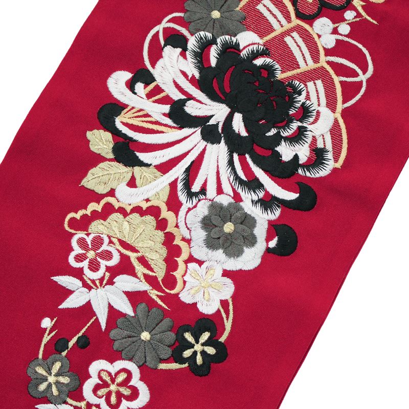 商品説明 素材 生地:ポリエステル100% 刺繍糸:レーヨン100%(金属糸使用の場合あり) サイズ 長さ109cm、幅16cm 季節 春・秋・冬 合わせる着物 振袖・袴・花嫁衣裳 用途 披露宴・式典・パーティ・成人式 注意 画面上と実物では多少色具合が異なって見える場合もございます。