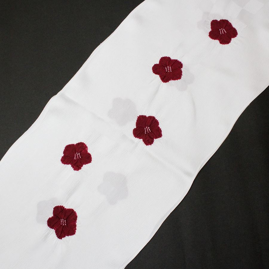 白や淡いカラーに輪出し絞りのアクセントが入った上品な正絹帯揚げです。