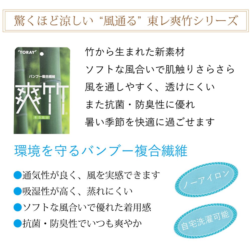 ■東レ爽竹 爽竹は東レの開発したバンブー複合繊維素材で、吸湿性が高く蒸れにくく、サラサラとして肌に張り付きにくくて爽やか、絹のようにソフトな風合いが特徴の単衣・夏向きの好適な新素材です。