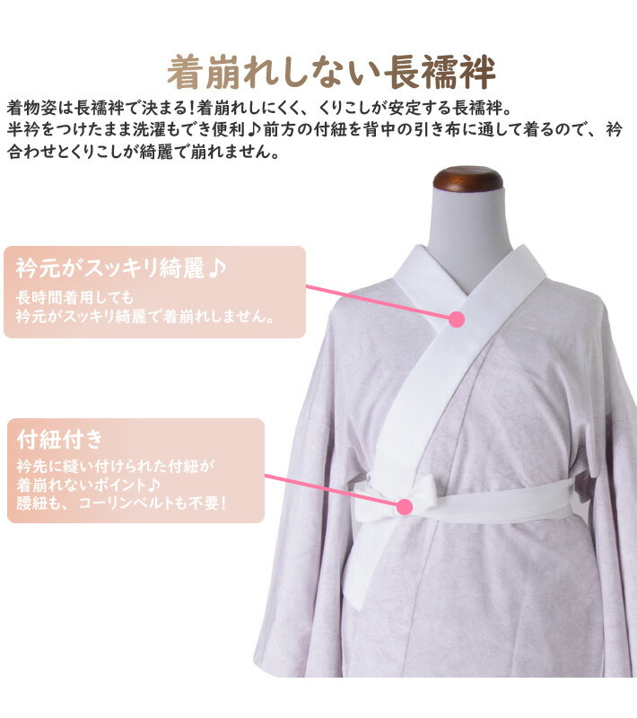 仕立ても、付紐、衣紋ぬきが初めから縫い付けられているため、衿合わせがスッキリし、衣紋も綺麗にぬけます。
