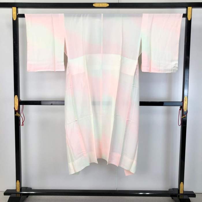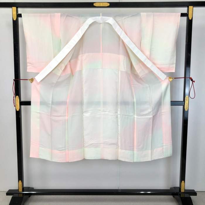 -サイズ(cm)-身丈:130裄:64袖幅:31.5袖丈:48前幅:27後幅:30.5裄出身頃:0裄出袖:3内揚:10-仕立-単衣無双袖半衿付-素材-正絹-管理番号-J-299長襦袢 単衣 淡いお色味の暈し模様 薄乙女色 しつけ糸 半衿付 J-299訪問着 付下げ 附下 付け下げ 振袖 紬 大島紬 色無地 留袖 色留袖 浴衣 道中着 和装コート 和装小物 長襦袢七五三 袋帯 名古屋帯 半幅帯 中古着物 リサイクル リユース アンティーク商品詳細 説明単衣の長襦袢です。